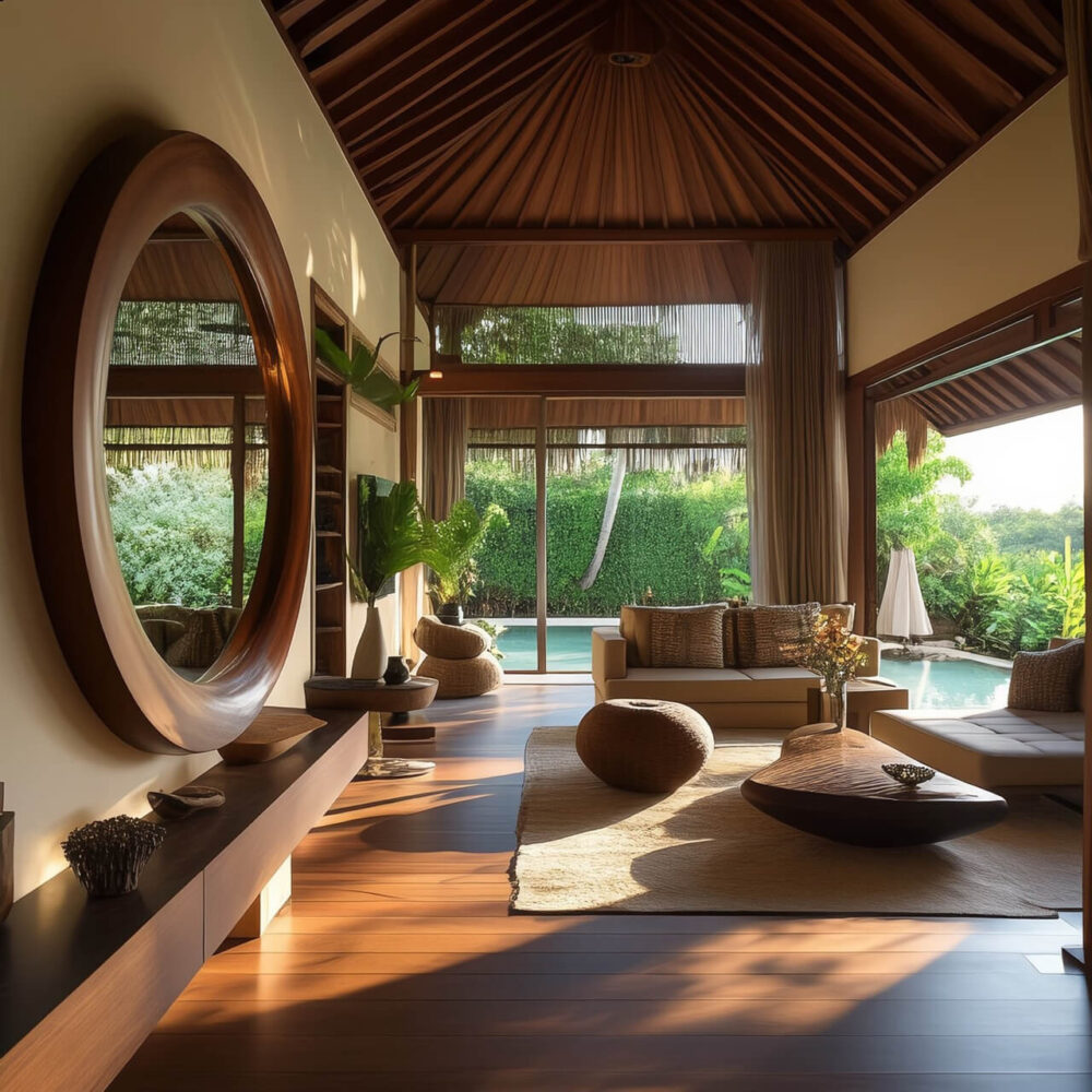 In Bali, natural textures are everything. They bring warmth, character, and a sense of calm that fits perfectly with the island lifestyle. Think soft, worn-in woods, woven finishes, and earthy, organic materials that make your space feel grounded and effortlessly stylish. Teak wood is a favorite — it’s strong, beautiful, and holds up well in Bali’s humid climate. Rattan and wicker are light, airy, and packed with texture, while bamboo is a sustainable choice that works beautifully for statement pieces or ceiling accents. Natural stone and terracotta add that rustic charm and raw depth that make a room feel real. And here’s a little tip: mixing these textures adds layers and richness, giving your space that elevated, laid-back luxury feel.