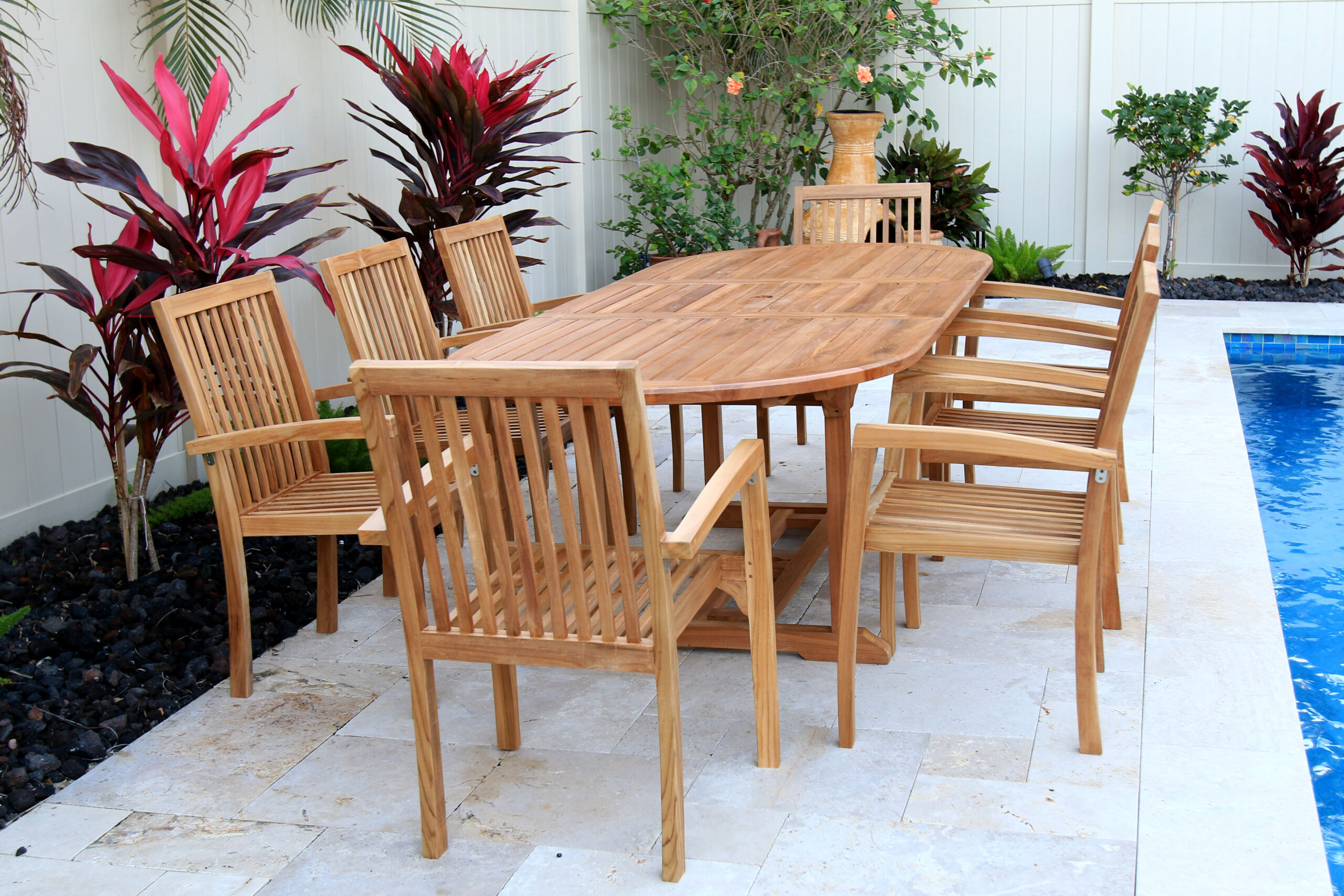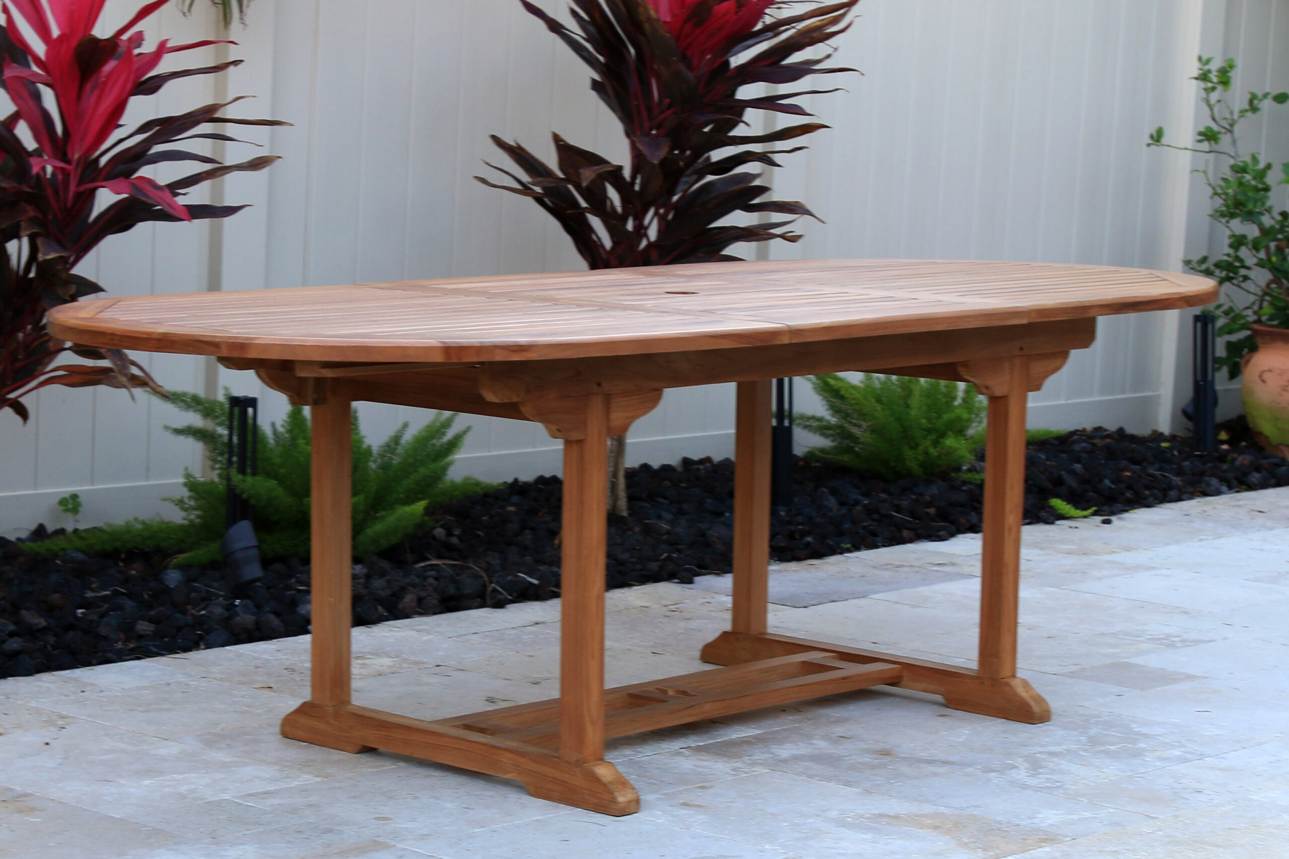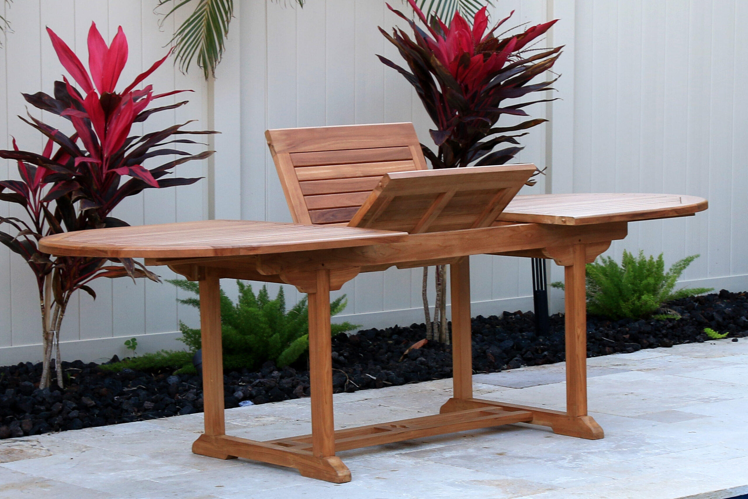 OVAL EXTENDING TABLE 94″ SINGLE LEAF – 8 KEONA STACKING CHAIRS – CUSHIONS